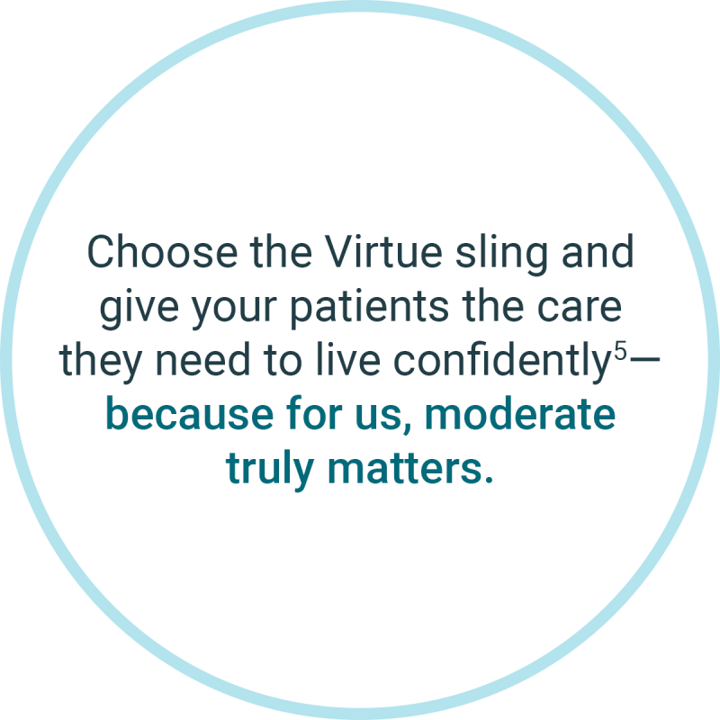 The Virtue sling allows your patients to return to their lifestyles fast*, with its minimally invasive approach. It’s a low complication procedure that gives you a strategic alternative to more invasive intervention like the AUS.