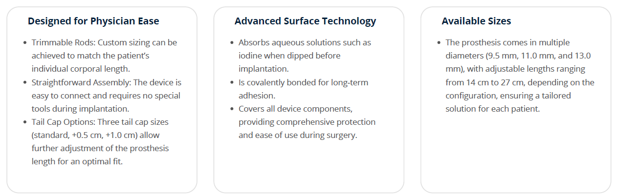 - Easy to Use: Patients can manually adjust the implant to an erect or flaccid position as needed.