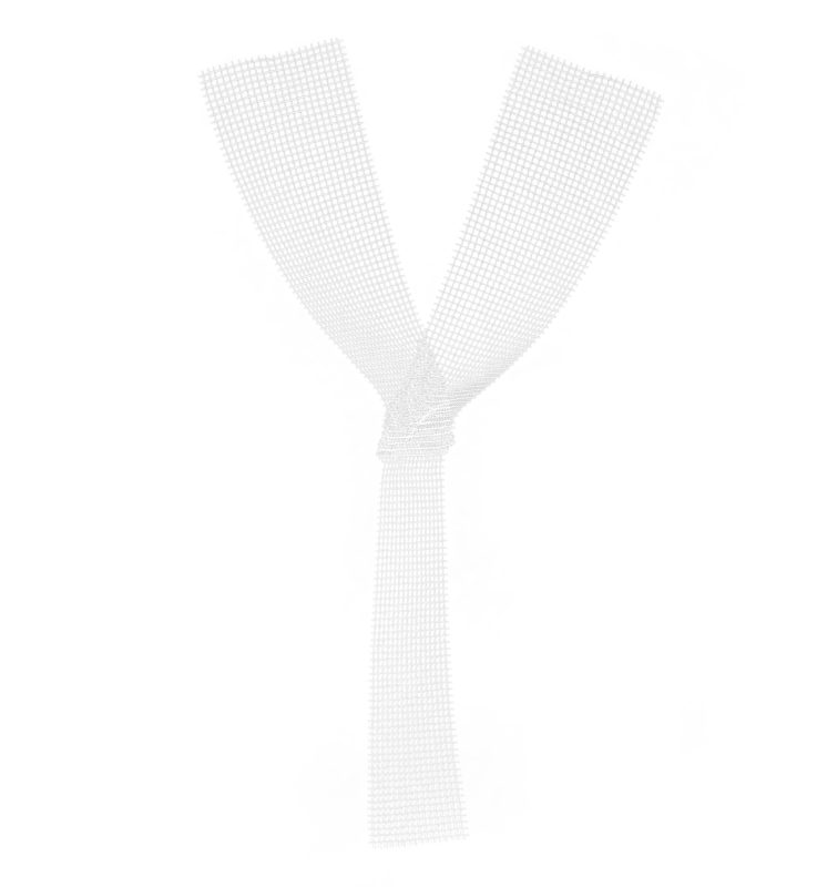 Avoid placing excessive tension on the Restorelle Y mesh implant during placement and adjustment to maintain mesh integrity. There should be an appropriate margin of mesh extending beyond the fixation points.